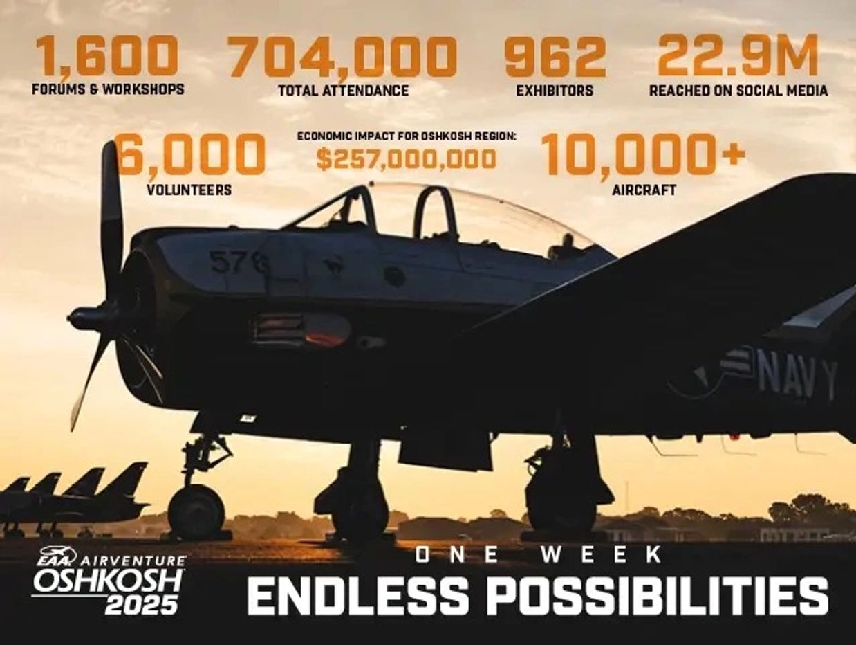 • Local economic impact: The EAA estimates the event brought in $257 million for the five counties in the Oshkosh region (Winnebago, Outagamie, Fond du Lac, Calumet, and Brown). That figure is based on a recent University of Wisconsin-Oshkosh economic impact study for the 2024 event.